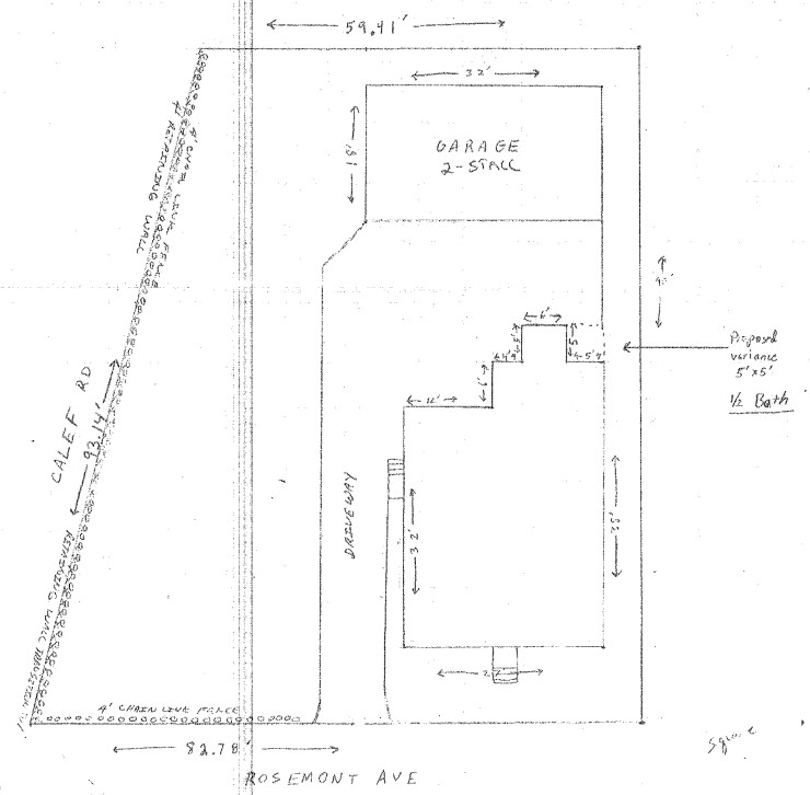 Applicant proposes to construct a 5โx5โ addition for a half bath, with a setback of 5โ where 10โ is required and seeks a variance from section 6.03(C) Side Yard Setback.