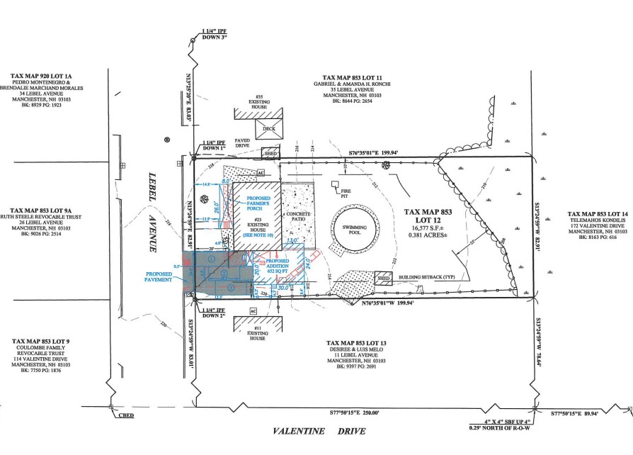 Eric Paquette (Agent) proposes to install a 19โx36โ in-ground pool in the street yard of a corner lot and seeks a variance from section 8.29(A)1 Accessory Structures and Uses,